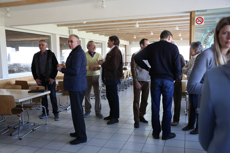 Im Anschluss an die Versammlung waren alle Mitglieder zu einem gemeinsamen Apéro und Mittagessen eingeladen. Der entspannte Rahmen erlaubt es den Mitgliedern, sich untereinander und mit dem Vorstand auszutauschen und die gemeinsame Passion Pferdezucht zu teilen. Parallel dazu zeigte Bruno Perrin auf der Leinwand seine Methode, junge Pferde anzureiten.