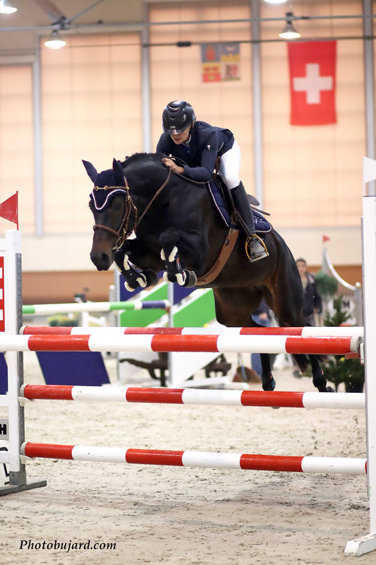 Danach fand die Finalprüfung der 6-Jährigen über einen Parcours von 130cm statt. Der von der Equipe um den Parcoursbauer Gérard Lachat gebaute Parcours war sehr interessant, anspruchsvoll und technisch. Viele Zuschauer verfolgten diese spannende Prüfung. Nur gerade 7 Paare absolvierten den Initialparcours ohne Fehler, wobei Martin Häfliger seine beiden Pferde holländischer Abstammung für das einmalige Stechen qualifizieren konnte, darunter der letztjährige Sieger bei den 5-jährigen Pferden Hamilton DB (Tornesch x Karandasj). Keine einzige Stange ist im Stechen gefallen. Demzufolge konnte das schnellste Paar, Cantia D (Holstein von Cayado x Caretino) unter dem Sattel von Barbara Schnieper, die Prüfung für sich entscheiden. Auf dem zweiten Rang klassierte sich Martin Häfliger mit Hamilton DB und Dritter wurde Arnaud Martin auf den Schweizer Pferd Quasim du Chêne CH (Quality Time x Laudanum), der Wallach, welcher schon 2017 an der Weltmeisterschaft der jungen Pferde in Lanaken brilliert hatte. Sein Besitzer und Züchter, Hans Zimmermann, kam in den Genuss der beiden Zusatzpreise für den Züchter und Besitzer des besten Schweizer Pferdes. Er konnte ebenfalls als aktiver Züchter des Verbandes CHEVAL SUISSE einen Deckgutschein auswählen.