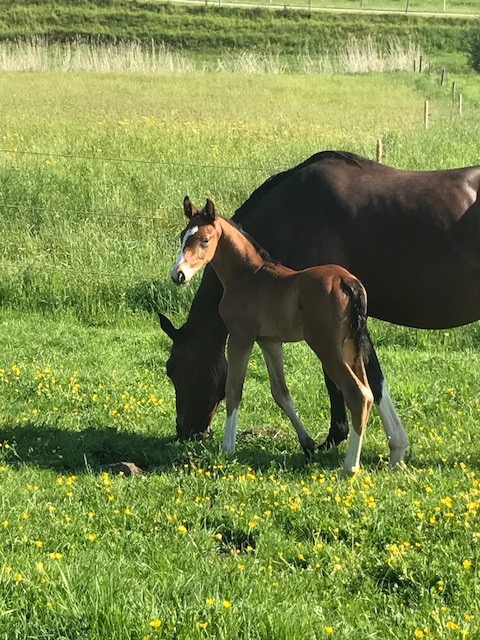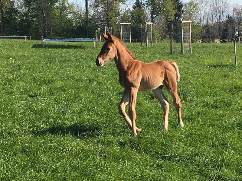 Pouliche (Gino H x Nina du Manaou (Ryon d'Anzex), éleveurs Michel et Jacques Pellaux