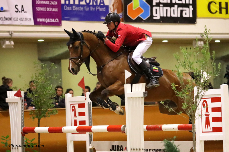 Un peu moins de la moitié des participants (26/56) de 5 ans étaient des chevaux indigènes. Pour les 6 ans, un bon tiers de chevaux suisses étaient au départ (17/47). Le nombre de chevaux suisses augmente d’année en année, même si le 50% recherché n’est pas encore atteint. Toutefois, fait réjouissant, le nombre de chevaux suisses qualifiés pour les finales avait sensiblement augmenté (42% pour les 5 ans et 36% pour les 6 ans). Les parcours, très bien construits pour les jeunes chevaux par Gérard Lachat  étaient techniques et exigeants. Dans les 5 ans, 14 chevaux ont réussi à se qualifier pour le barrage, dont 2 chevaux suisses. Le premier parcours sans faute au barrage a été réalisé par Maéva Béchir en selle sur GRADIJE (KWPN, Landino x Caresino). L’étalon suisse QUIDAM VOM ILLUM CH (Quebracho Semilly x Galoubet A, éleveur et propriétaire: Raphael Jäger), monté par Emilie Stampfli, a effectué un magnifique parcours sans faute et plus rapide. Encore plus rapide et particulièrement agile, la jument GIAVANNA CB (KWPN: Ukato x Lux) monté par son jeune propriétaire de 14 ans Gilles Müller, s’installait à la tête de l’épreuve. Puis vint le tour de Marco Moser montant DELUGA (Holst., Casall x Solar), qui réalisa un parcours sans faute et une demi-seconde plus rapide. Grâce à cette performance, le couple s’assurait la victoire de l’épreuve. Le seconde cheval suisse, OMBRA DU RECORD CH (Landjuweel St. Hubert x Libero H;  éleveur: Raymond Martin; propriétaire: Florence Favre-Montavon) et son cavalier Jacky Studer ont terminé au 5ème rang grâce également à un rapide parcours vierge de toute pénalité et ont obtenu le titre de meilleur cheval suisse des 5 ans. Sa propriétaire s’est vu remettre le prix spécial de Fr. 500.- offert au propriétaire du meilleur cheval suisse de l’épreuve. L’éleveur du second cheval suisse, M. Raphaël Jäger, a reçu un bon de Fr. 500.- pour le débourrage d’un cheval par M. Bruno Perrin, selon la méthode Blondeau. Lorsque le cavalier expérimenté Stefan Lauber effectua son barrage avec GRANDEUR WP (KWPN: Whistler x Vainqueur), nous avons cru l’espace d’un instant à sa victoire. Ils se sont finalement classés au 2ème rang, avec un temps ex-aequo à celui de Gilles Muller.